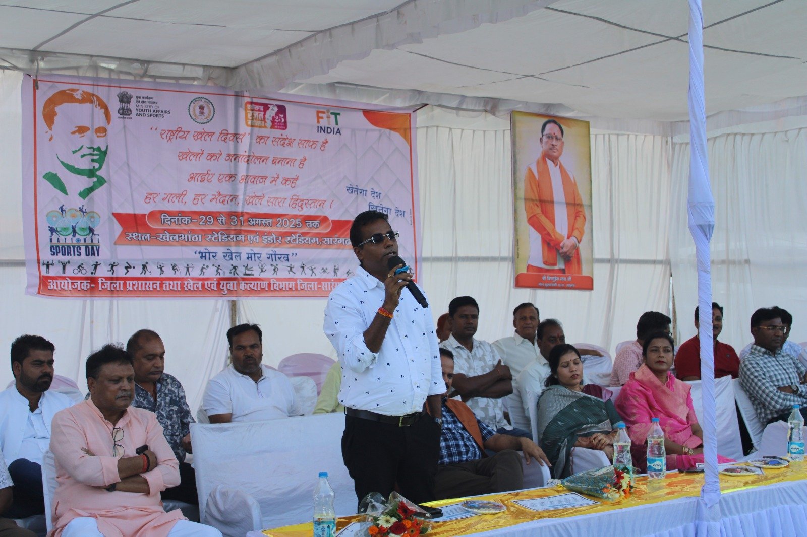 सारंगढ़ बिलाईगढ़, 29 अगस्त 2025/महान हॉकी खिलाड़ी मेजर ध्यानचंद की जयंती के उपलक्ष्य में सारंगढ़ के खेलभाठा में वेटलिफ्टिंग, क्रिकेट, फुटबॉल, कबड्डी, खोखो, दौड़ आदि का आयोजन किया गया। अतिथि जिला पंचायत अध्यक्ष पांडेय और कलेक्टर डॉ कन्नौजे ने सभा को संबोधित किया। इस अवसर पर खेल संघों और खिलाड़ी को अतिथियों के द्वारा खेल सामग्री और विजेताओं को पुरस्कार प्रदान किया गया। इस अवसर पर बड़ी संख्या में छात्र छात्राएं, कोच, खिलाड़ी, अपर कलेक्टर प्रकाश सर्वे, सीईओ जिला पंचायत इंद्रजीत बर्मन, एसडीएम अनिकेत साहू , विधायक उत्तरी जांगड़े, जिला पंचायत अध्यक्ष संजय भूषण पांडेय, जनपद पंचायत सारंगढ़ अध्यक्ष ममता ठाकुर, गणमान्य नागरिक ज्योति पटेल, भुवन मिश्रा, अरुण गुड्डू यादव, मनोज जायसवाल, जांजगीर चांपा सांसद प्रतिनिधि संतोष सोनवानी, संदीप शर्मा, बरतराम साहू आदि उपस्थित थे।