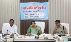 सारंगढ़ बिलाईगढ़, 4 सितम्बर 2025/वाणिज्यिक कर (आबकारी) विभाग और सारंगढ़ बिलाईगढ़ जिले की प्रभारी सचिव आर शंगीता की अध्यक्षता में कलेक्टर कार्यालय सारंगढ़ में जिला स्तरीय बैठक का आयोजन किया गया। सचिव को कलेक्टर डॉ संजय कन्नौजे ने जिले की सामान्य जानकारी दी। इसी प्रकार सभी अधिकारियों ने अपने विभागीय योजनाओं, प्रगतिरत कार्यों एवं आगामी दिनों में कार्य पूर्णता, लक्ष्य आदि का विस्तृत जानकारी दिया गया। इस अवसर पर पुलिस अधीक्षक आञ्जनेय वार्ष्णेय, अपर कलेक्टर प्रकाश सर्वे, एस के टंडन सहित जिले के अधिकारीगण उपस्थित थे।
